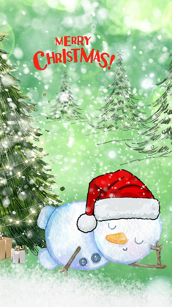 Edytor tapety: Bałwanek i choinki w świątecznej grafice