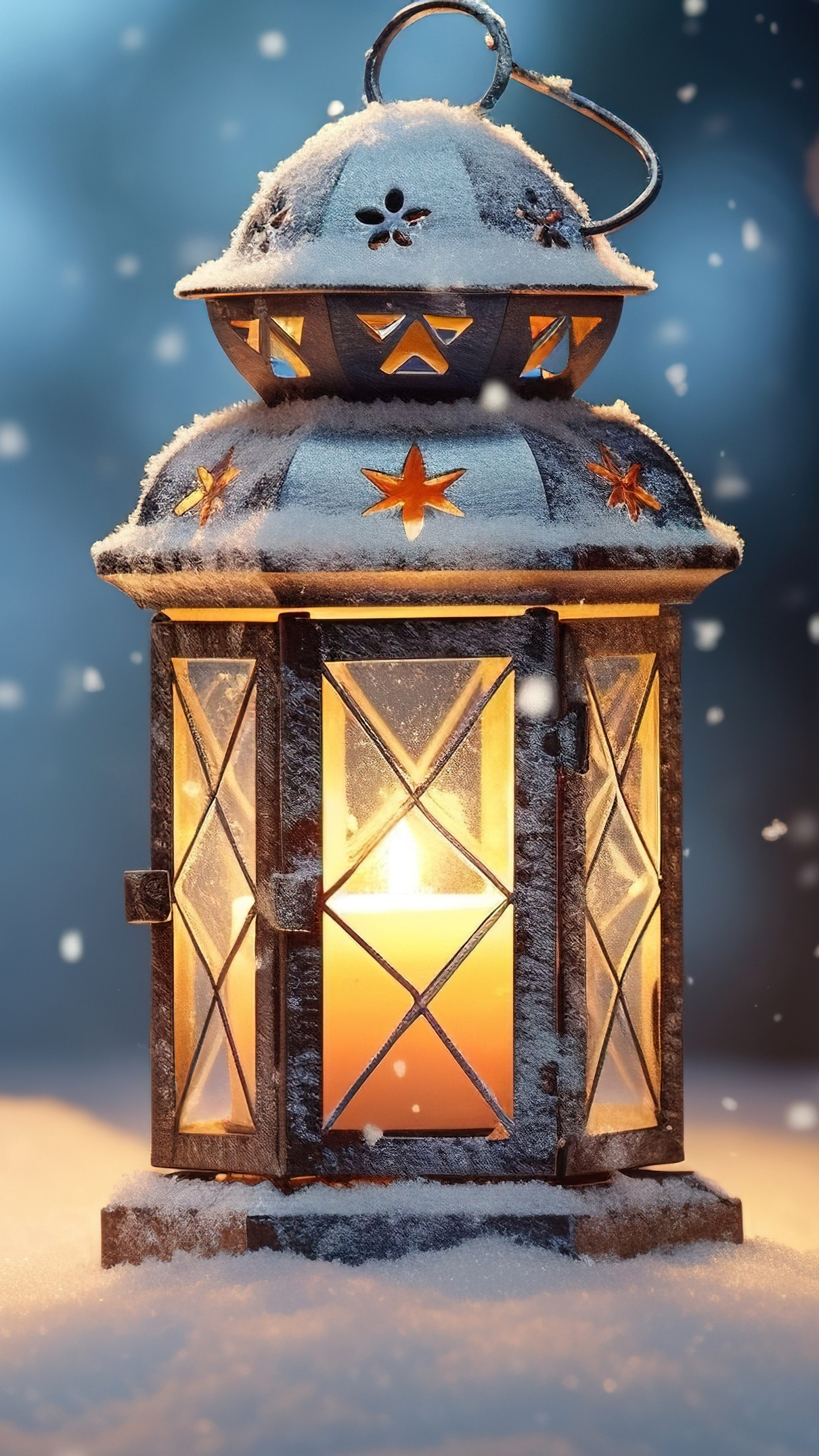 Edytor tapety: Świecący lampion na śniegu