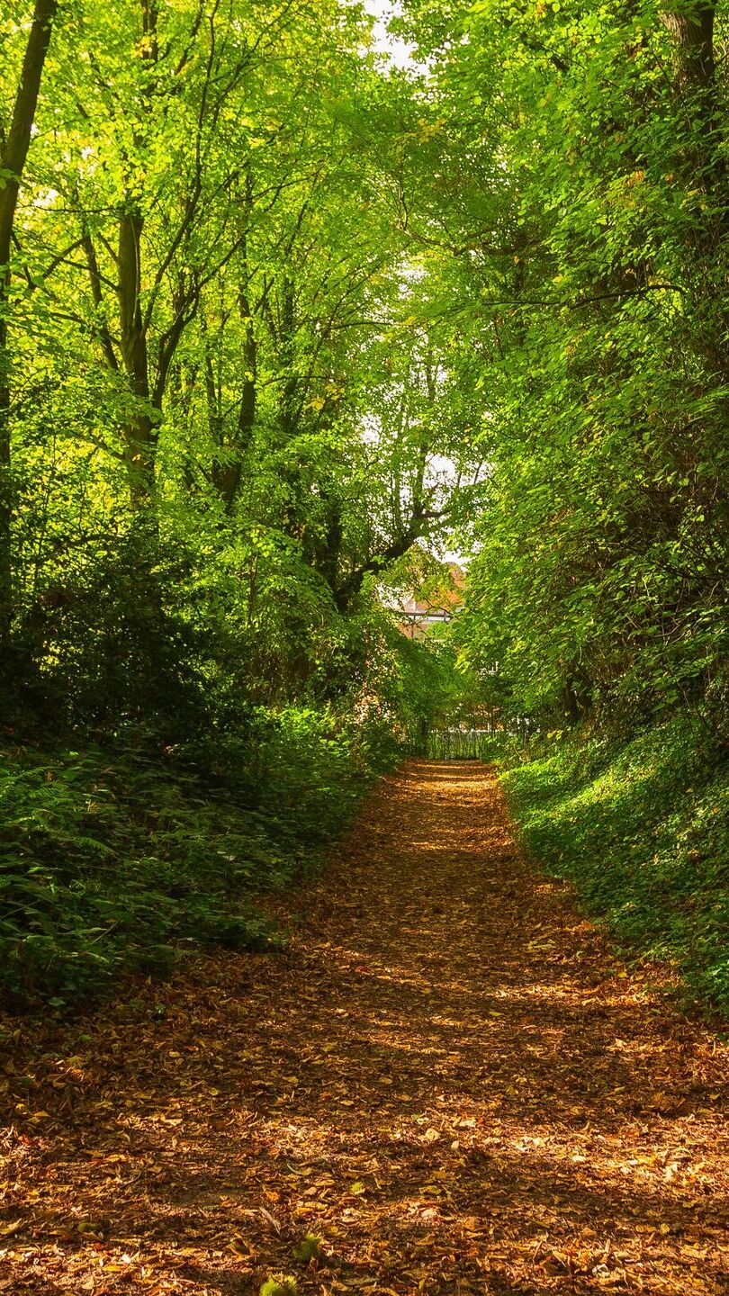 Edytor tapety: Opadłe liście na leśnej ścieżce