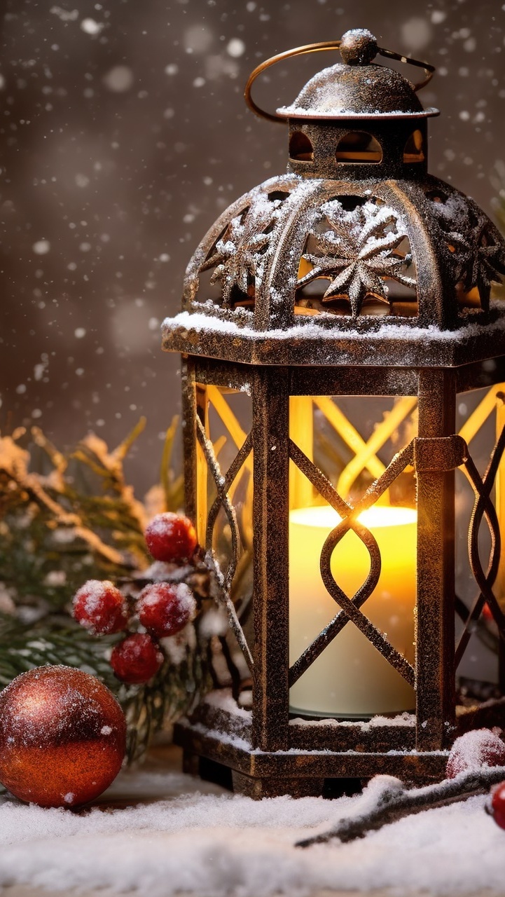 Edytor tapety: Lampion i bombki na śniegu