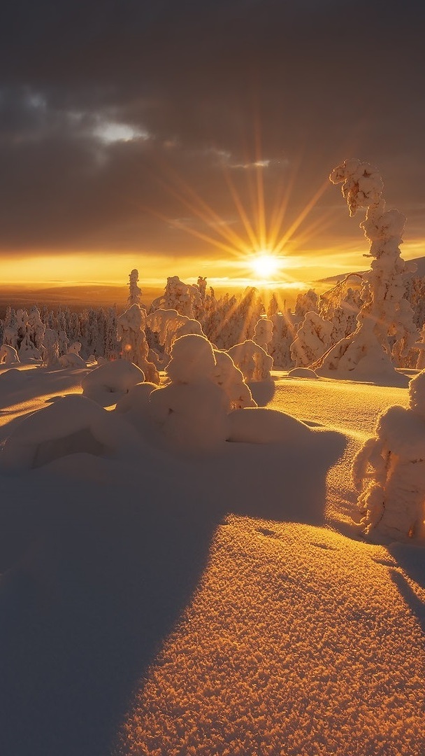 Edytor tapety: Poranek nad ośnieżonymi drzewami