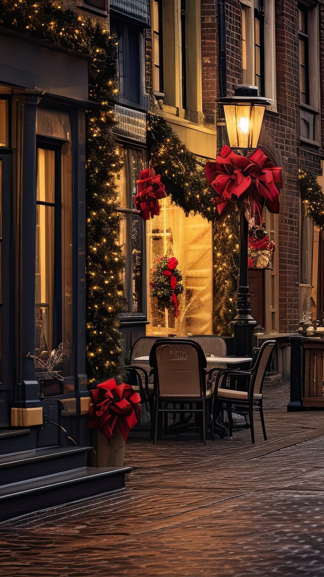 Edytor tapety: Stolik na chodniku pod udekorowanym oknem