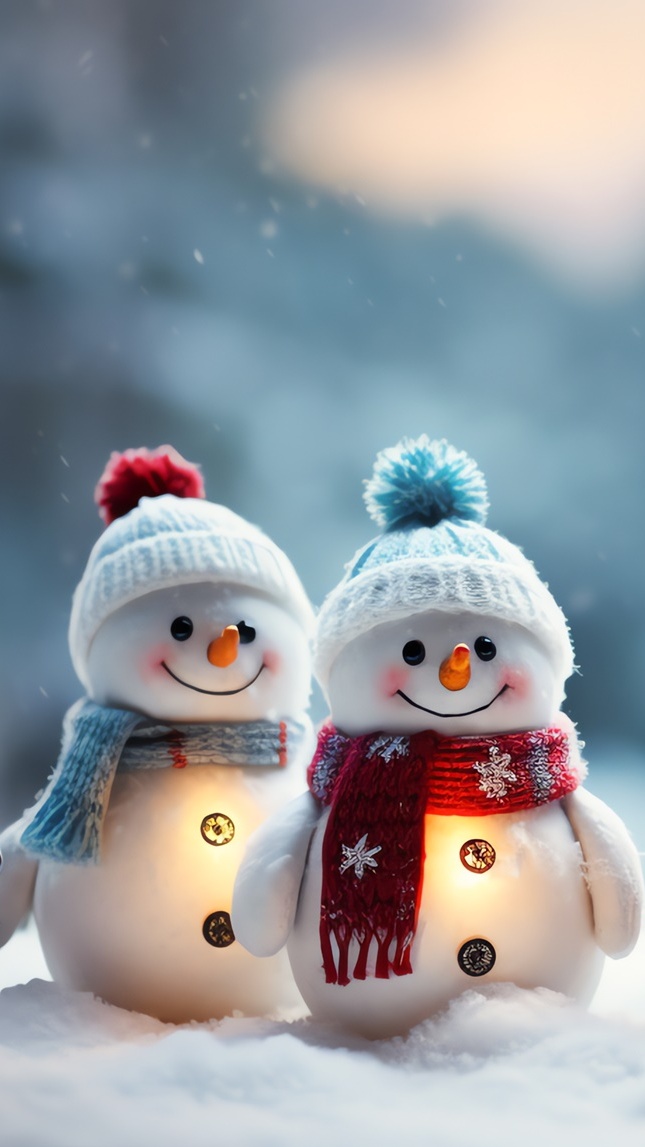 Edytor tapety: Dwa wesołe bałwanki na śniegu
