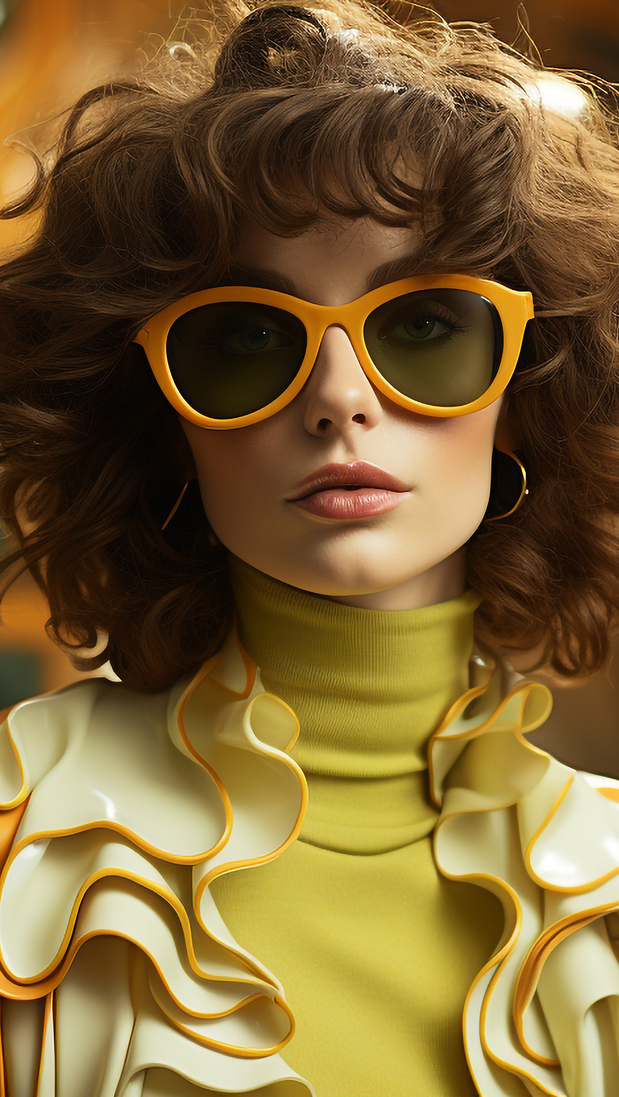Edytor tapety: Kobieta w golfie i żółtych okularach