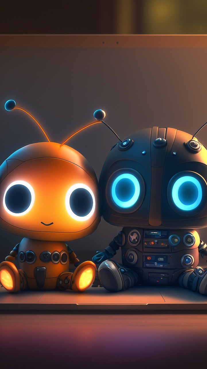 Edytor tapety: Dwa małe roboty na laptopie