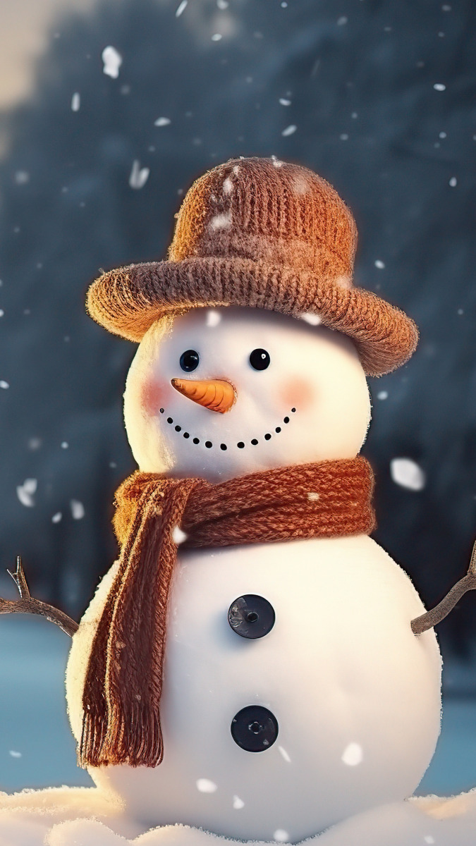Edytor tapety: Bałwan w kapeluszu i padający śnieg
