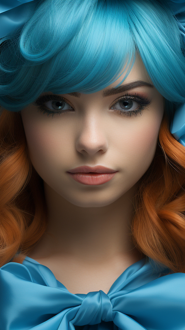 Edytor tapety: Twarz kobiety z niebieską kokardą