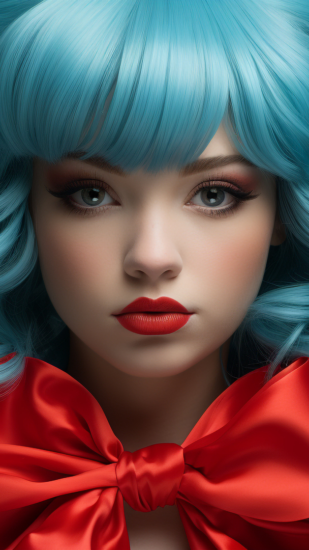 Edytor tapety: Kobieta z czerwoną kokardą na szyi