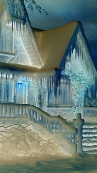Edytor tapety: Zwisające sople z ośnieżonego dachu domu