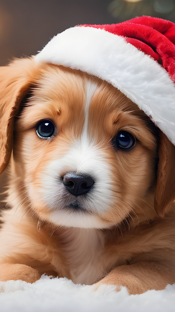 Edytor tapety: Głowa szczeniaka w czapce Mikołaja