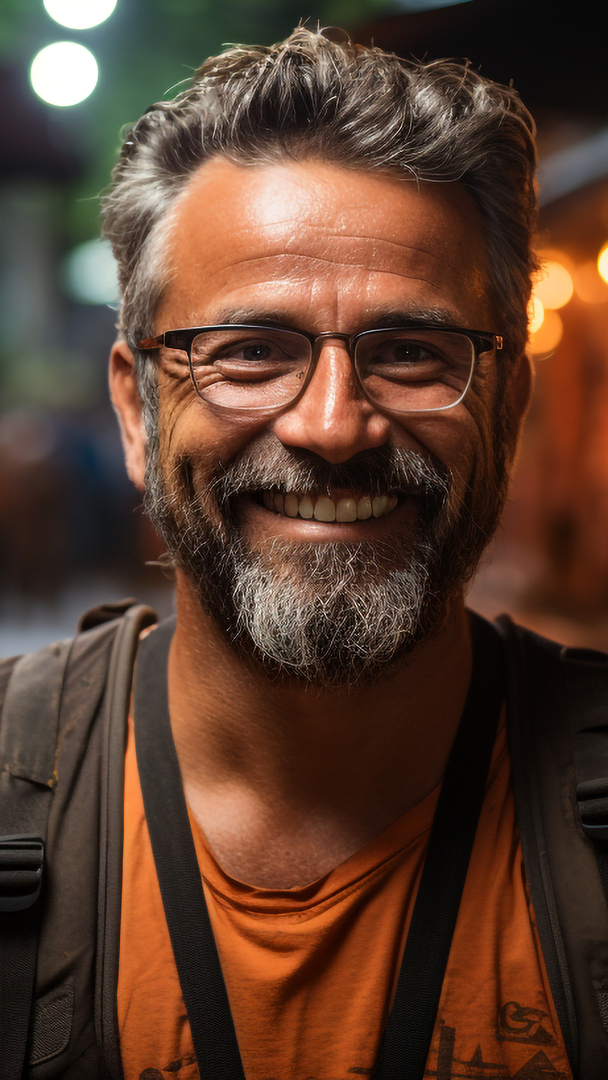 Edytor tapety: Mężczyzna z siwym zarostem w okularach