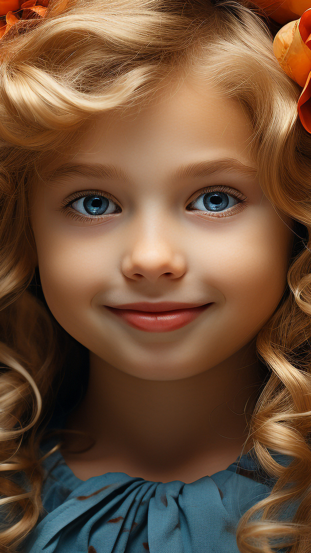 Edytor tapety: Uśmiechnięta dziewczynka z kręconymi blond włosami