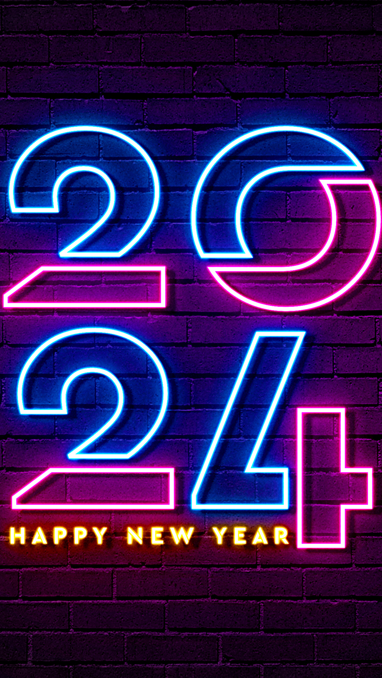 Edytor tapety: Neon z życzeniami noworocznymi na murze