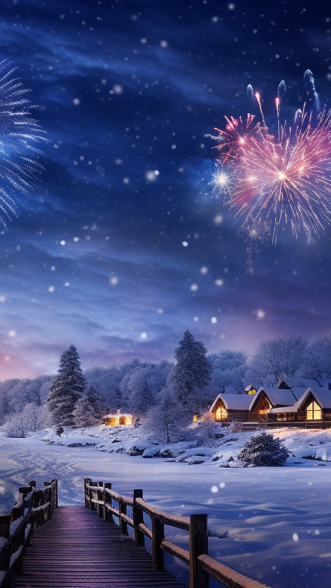 Edytor tapety: Fajerwerki nad oświetlonymi domami