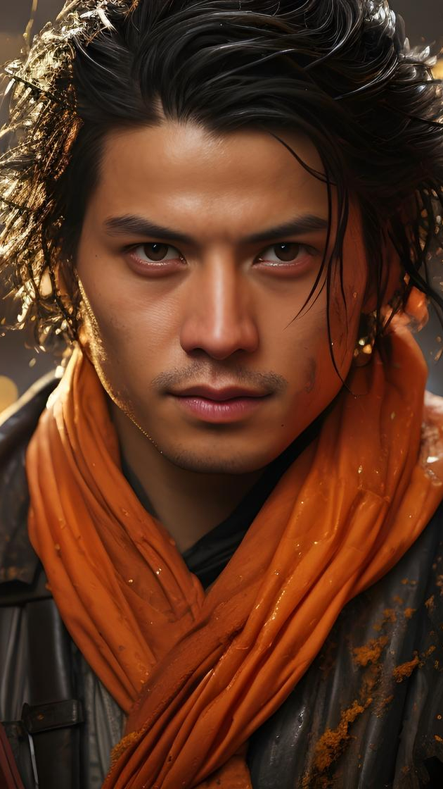 Edytor tapety: Mężczyzna w pomarańczowym szaliku w grafice