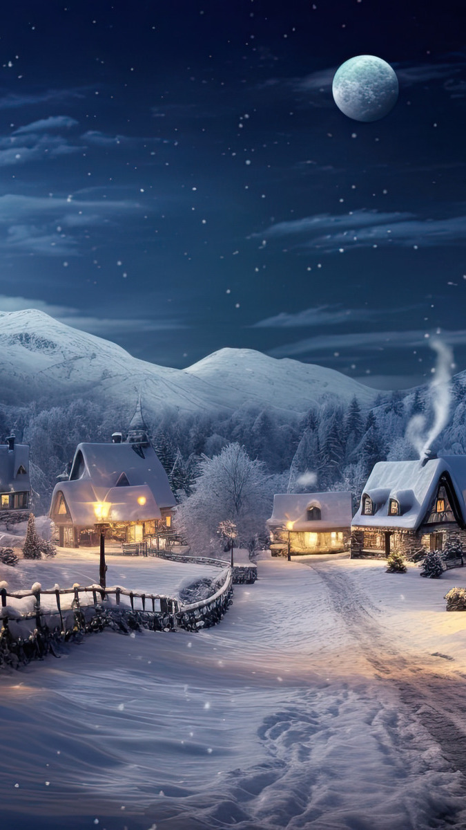 Edytor tapety: Oświetlone domy w świetle księżyca