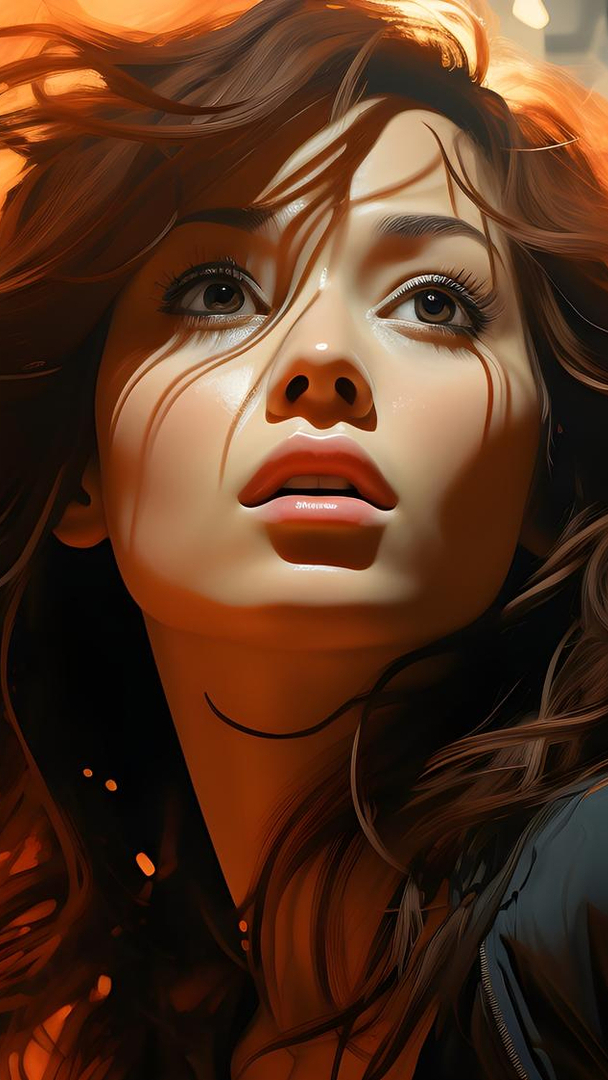 Edytor tapety: Twarz długowłosej kobiety w grafice