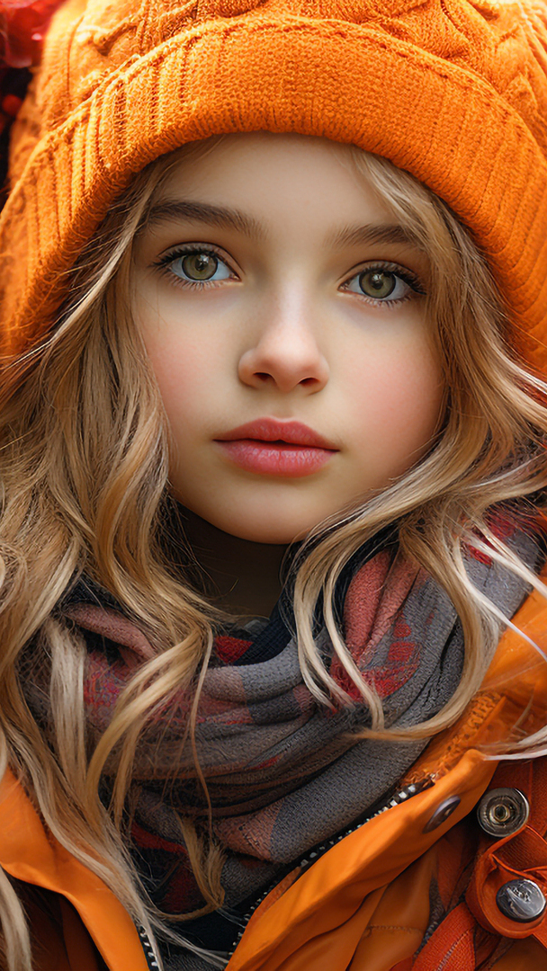 Edytor tapety: Dziewczynka w pomarańczowej kurtce i czapce