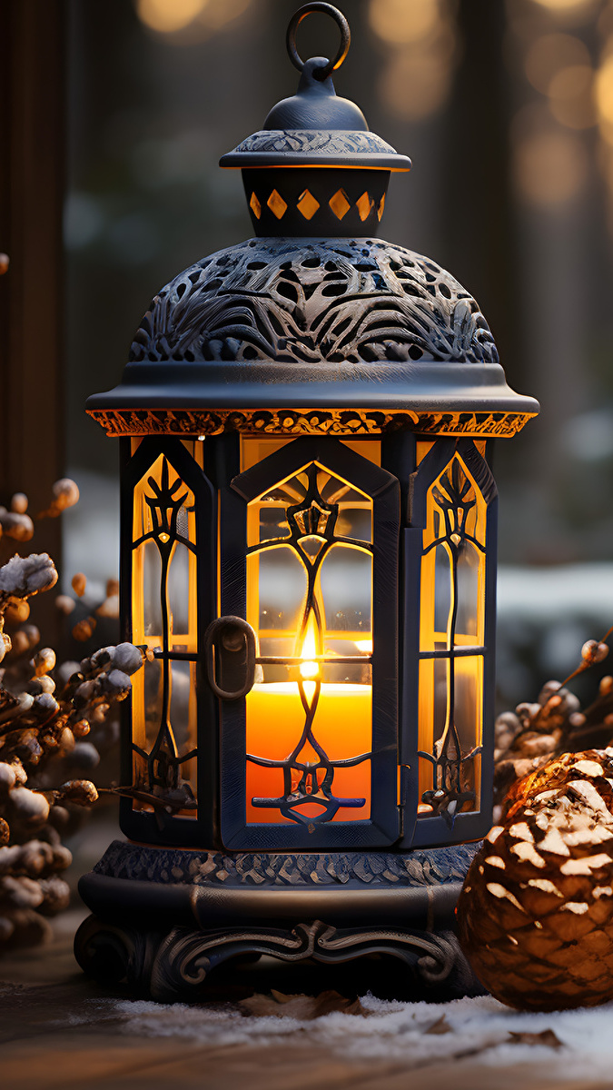 Edytor tapety: Lampion z żółtą płonącą świecą