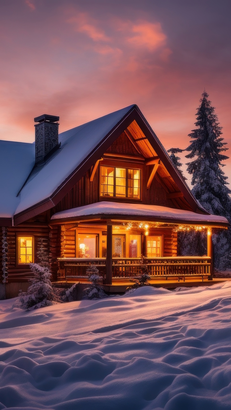 Edytor tapety: Oświetlony dom o zmroku