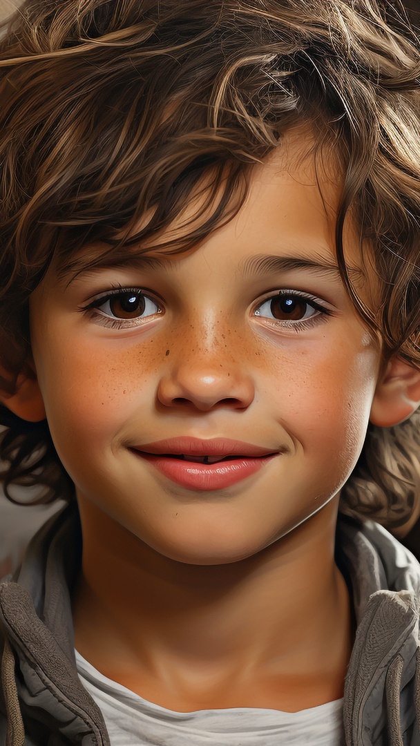 Edytor tapety: Uśmiechnięty piegowaty chłopiec w grafice