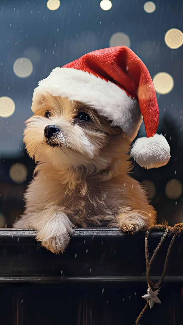 Edytor tapety: Kudłaty piesek w czapce Mikołaja