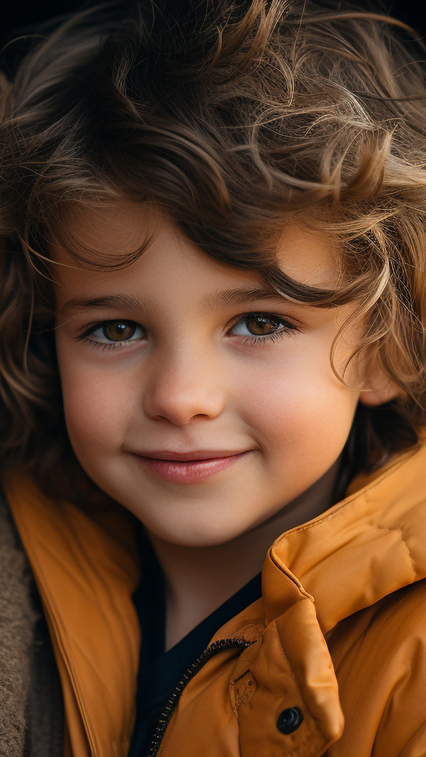 Edytor tapety: Uśmiechnięty chłopiec w żółtej kurtce