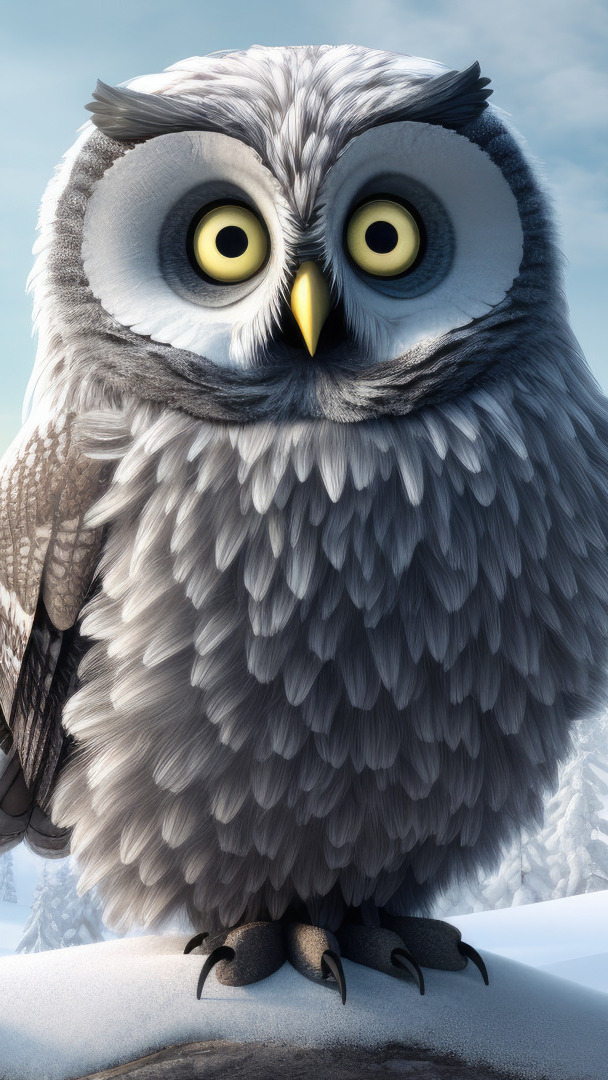 Edytor tapety: Sowa na śniegu w grafice