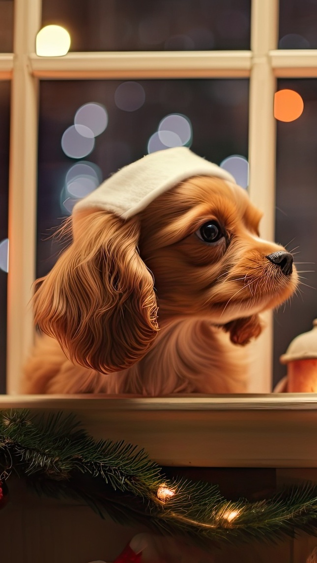 Edytor tapety: Pies na parapecie okna