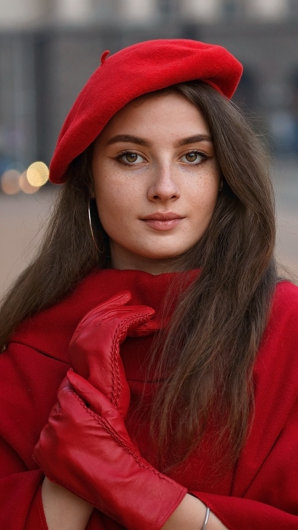 Edytor tapety: Dziewczyna w czerwonym płaszczu i berecie