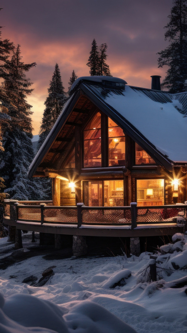 Edytor tapety: Oświetlony dom z tarasem
