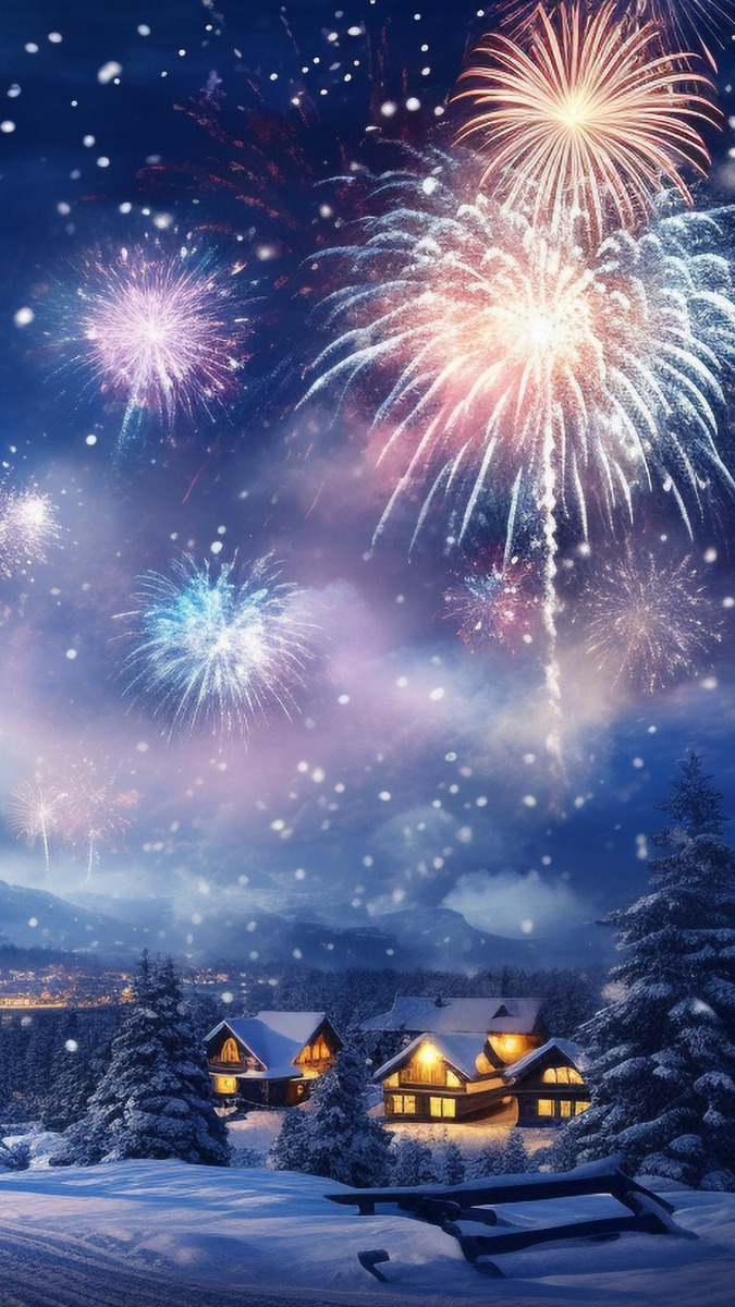 Edytor tapety: Fajerwerki nad oświetlonymi domami