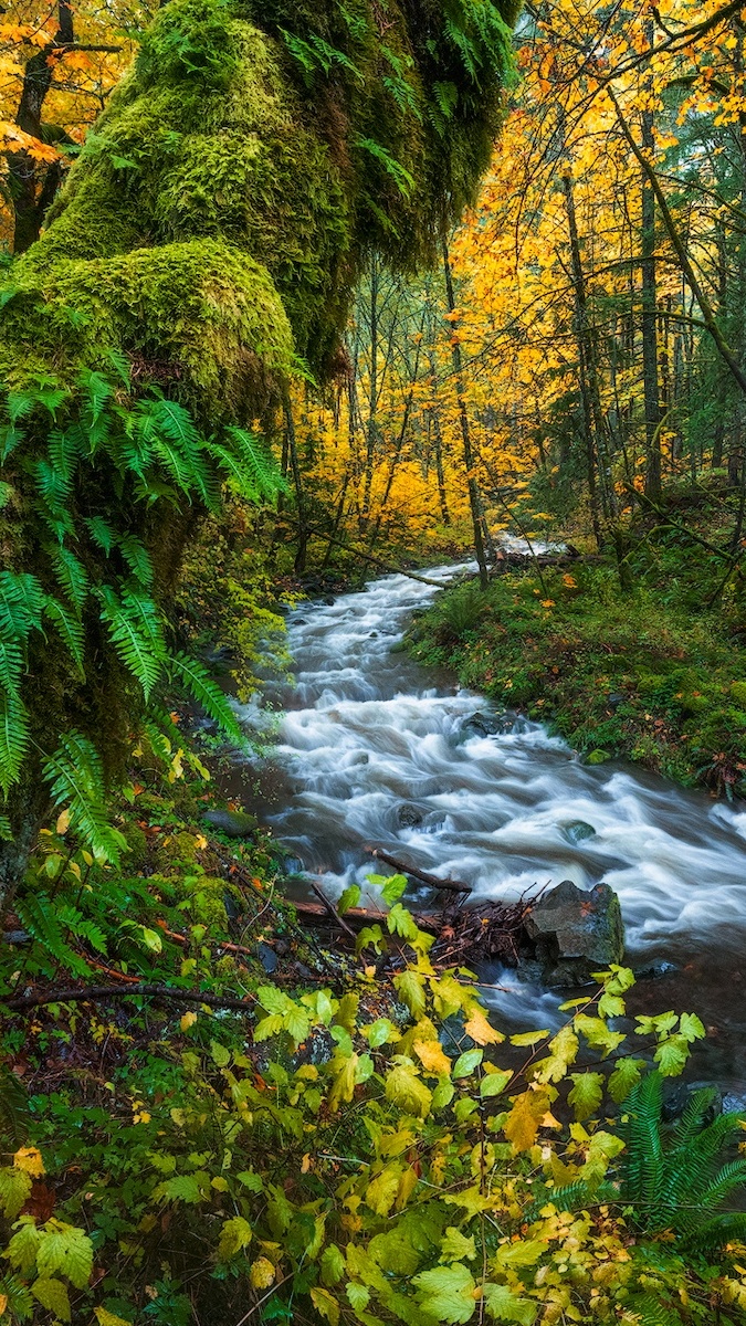 Edytor tapety: Rwący strumień w jesiennym lesie