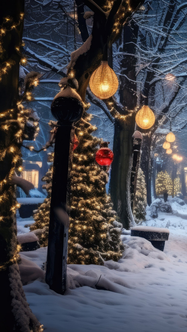 Edytor tapety: Latarnie uliczne pomiędzy drzewami