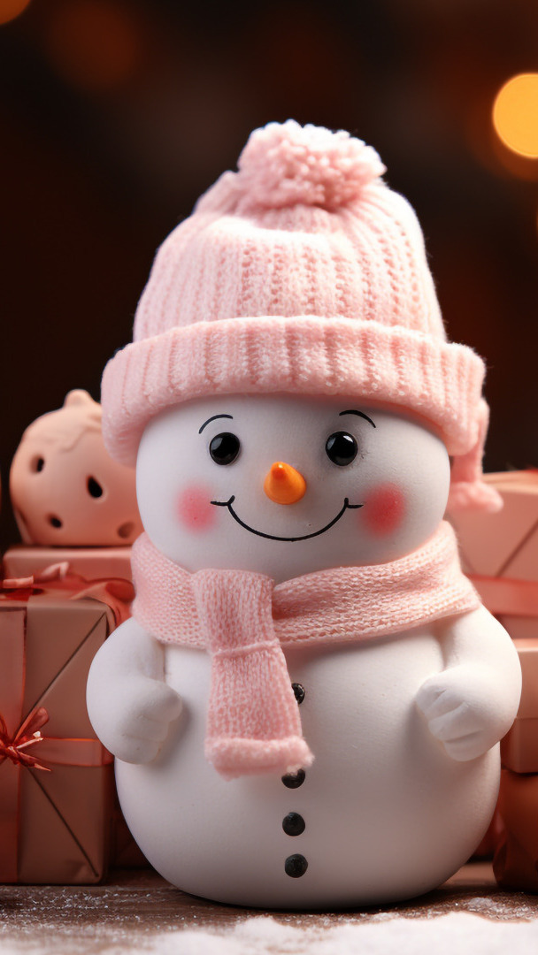 Edytor tapety: Uśmiechnięty bałwanek obok prezentów