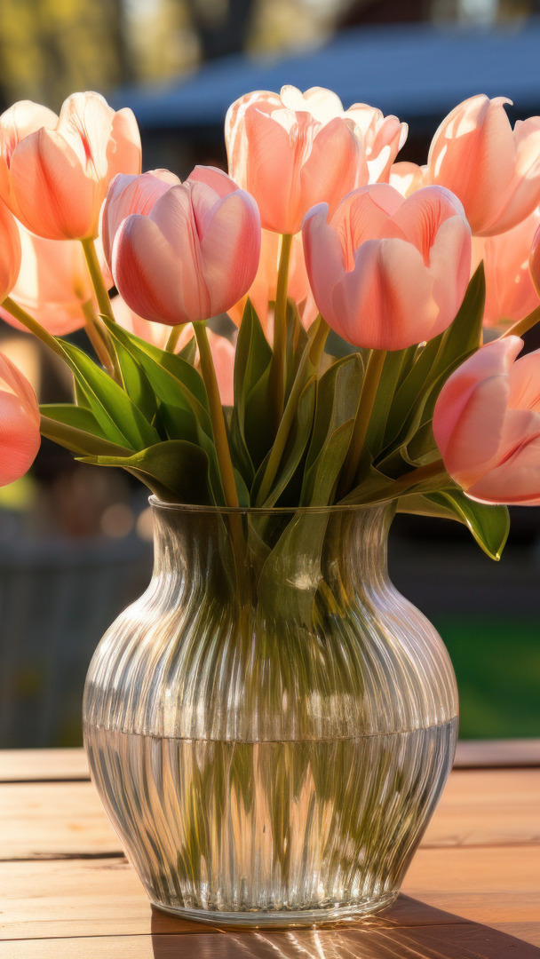 Edytor tapety: Rozświetlone różowe tulipany w wazonie