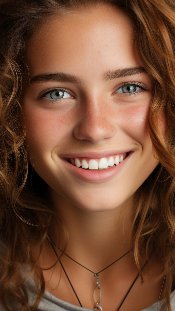 Edytor tapety: Uśmiechnięta twarz piegowatej kobiety