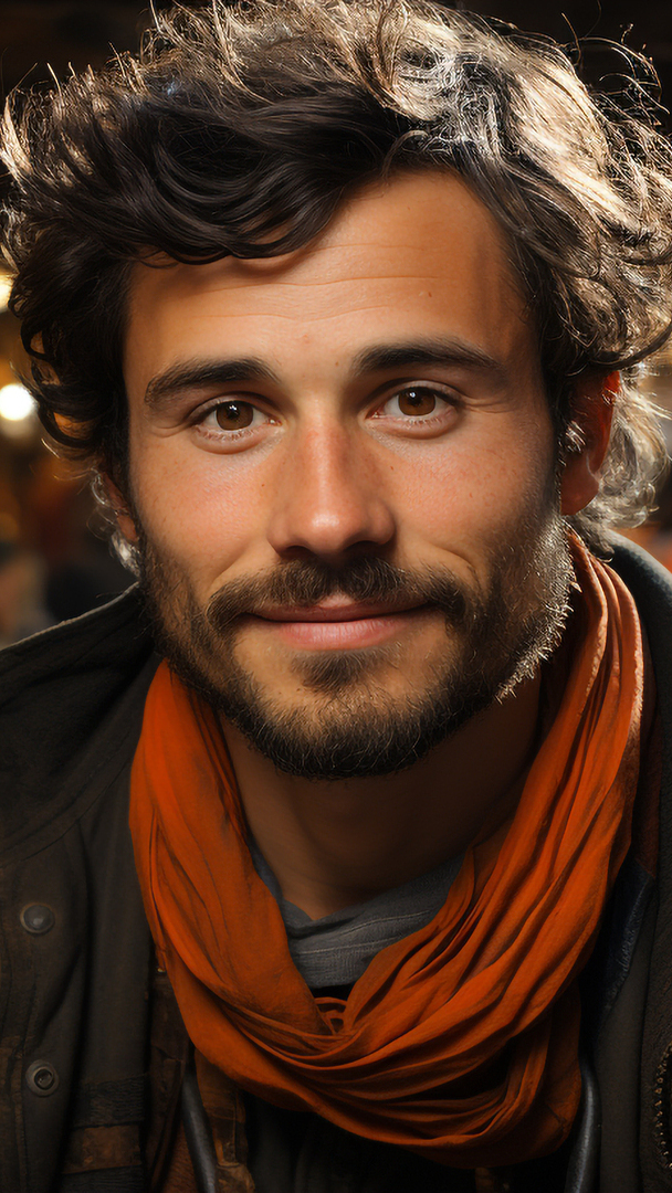 Edytor tapety: Uśmiech na twarzy mężczyzny z zarostem