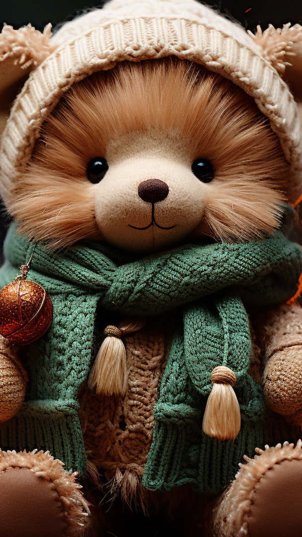 Edytor tapety: Siedzący miś w czapce i szaliku