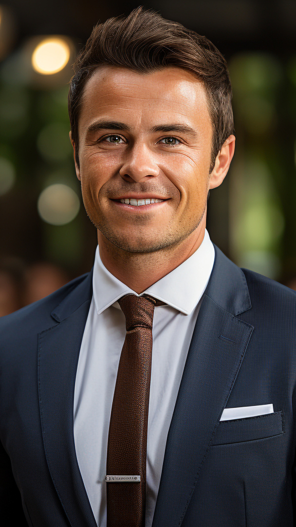 Edytor tapety: Uśmiech na twarzy mężczyzny w garniturze