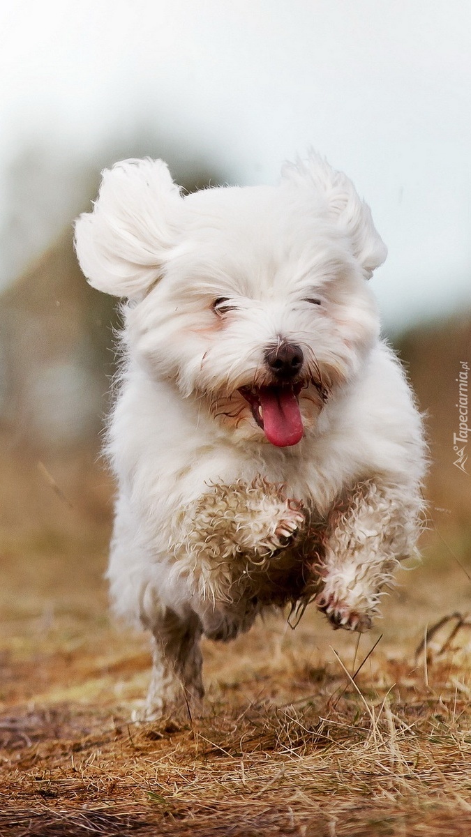 Edytor tapety: Biegnący biały piesek