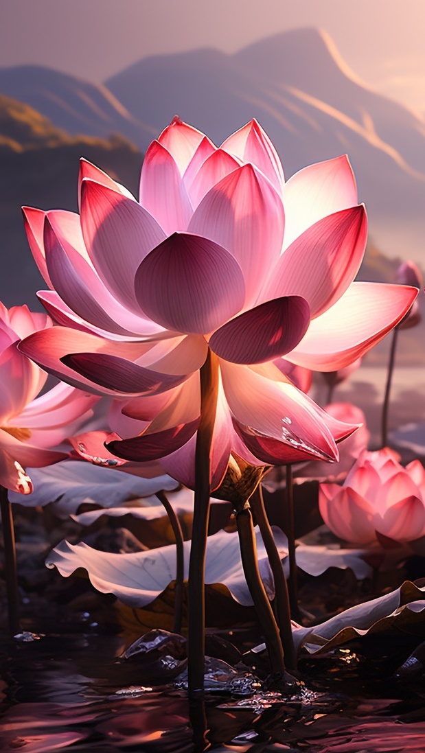 Edytor tapety: Rozświetlone kwiaty lotosu w zbliżeniu