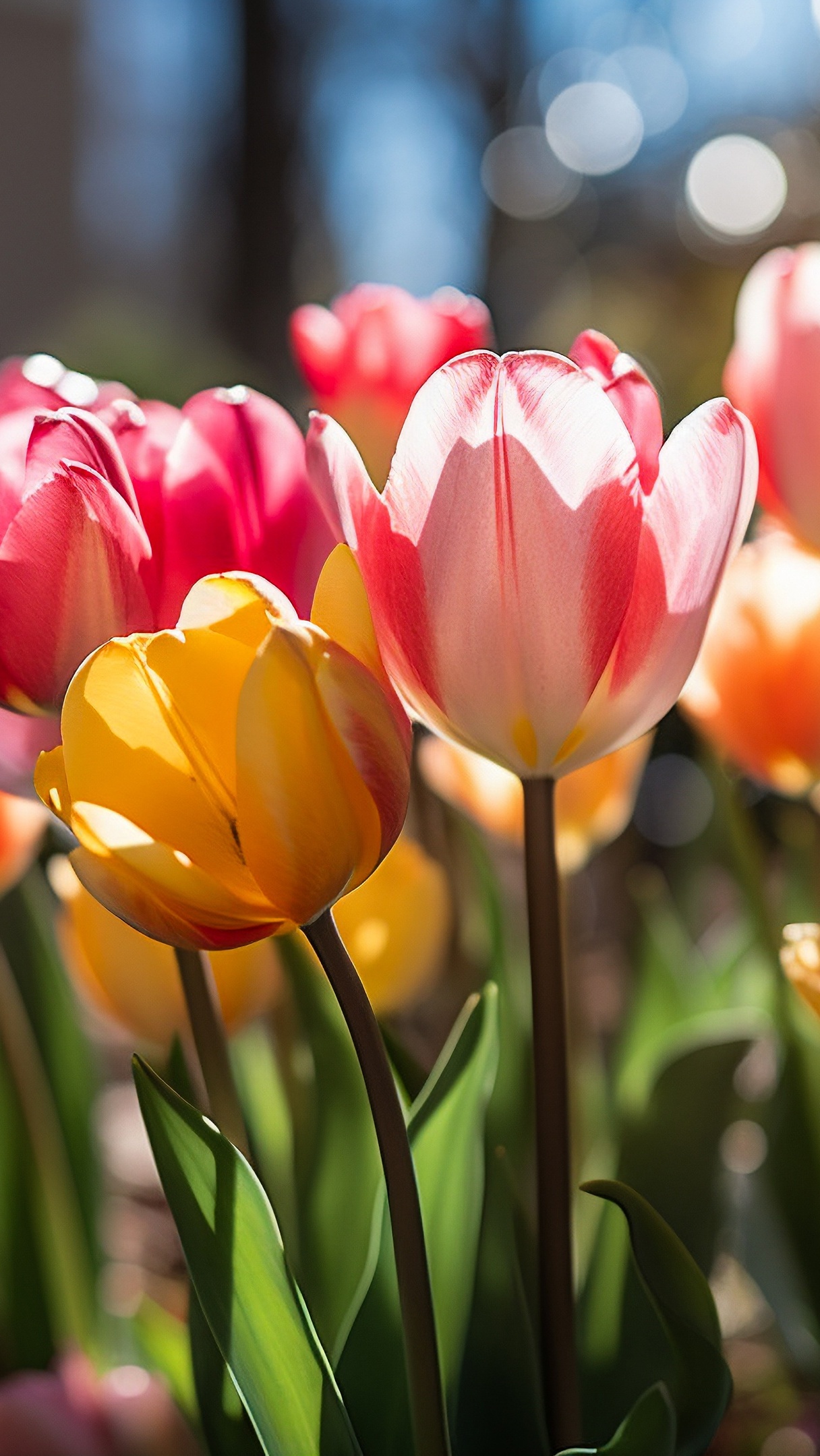 Edytor tapety: Kolorowe tulipany w blasku słońca
