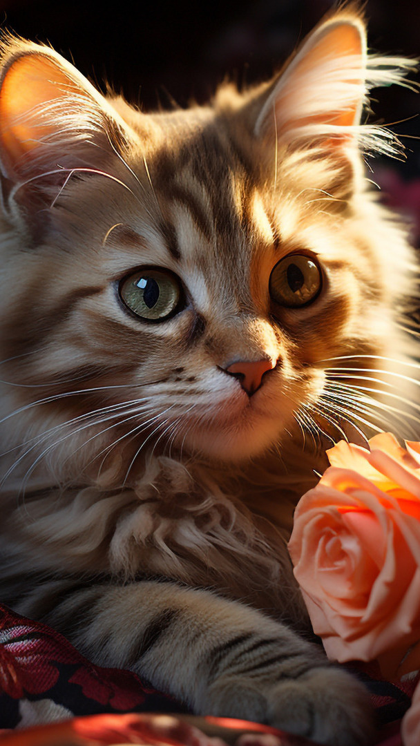 Edytor tapety: Kot z pomarańczową różą na łapkach
