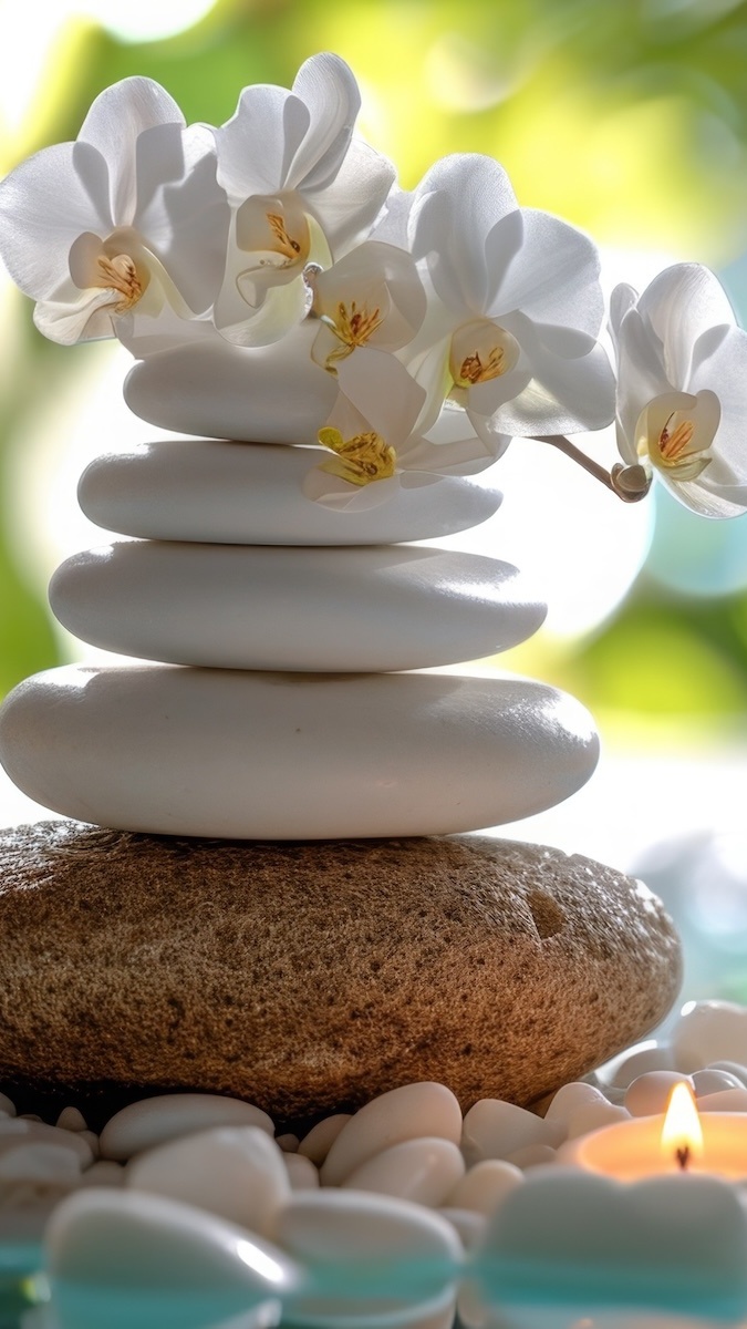 Edytor tapety: Biały storczyk na kamieniach