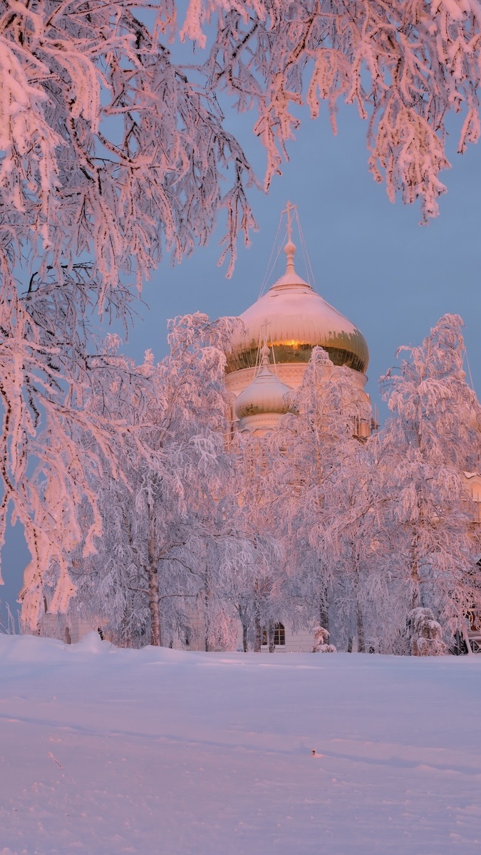 Edytor tapety: Cerkiew wśród ośnieżonych drzew