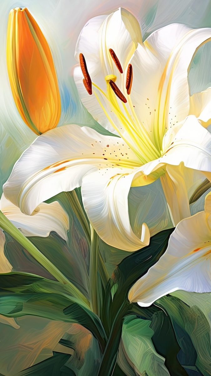 Edytor tapety: Biała lilia z żółtym pąkiem