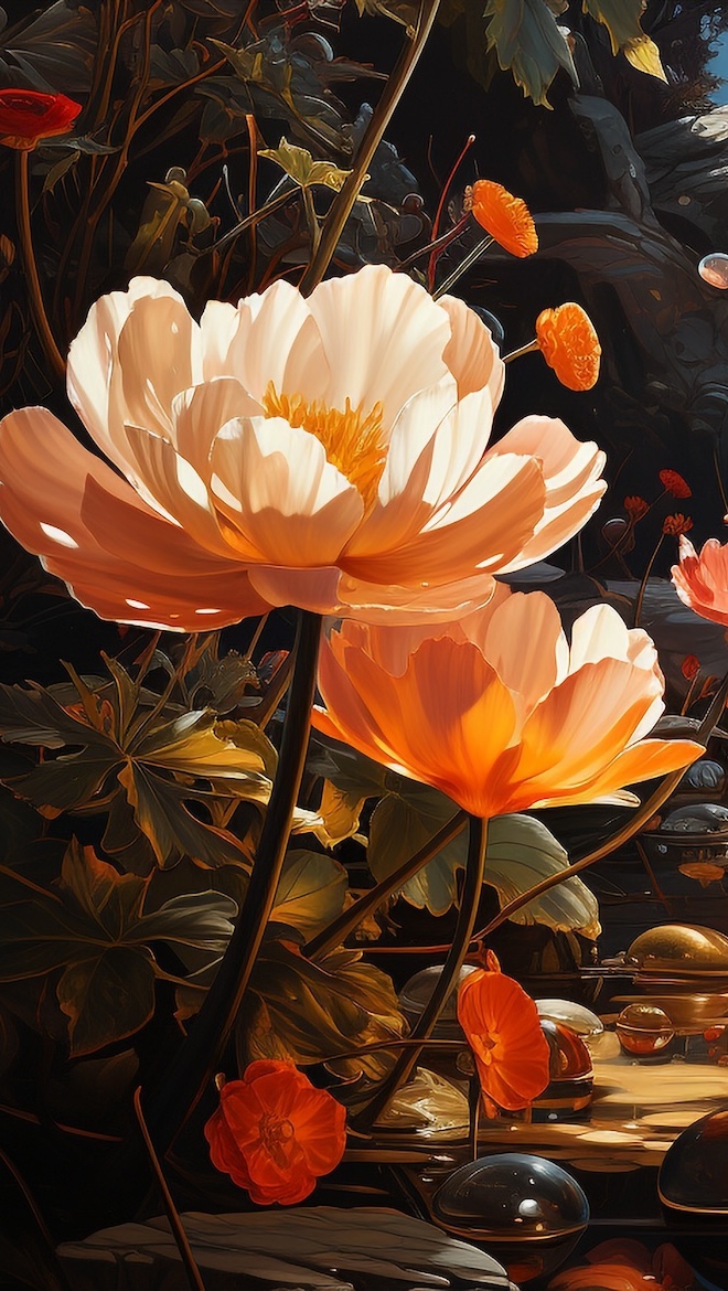 Edytor tapety: Rozświetlone kwiaty w grafice