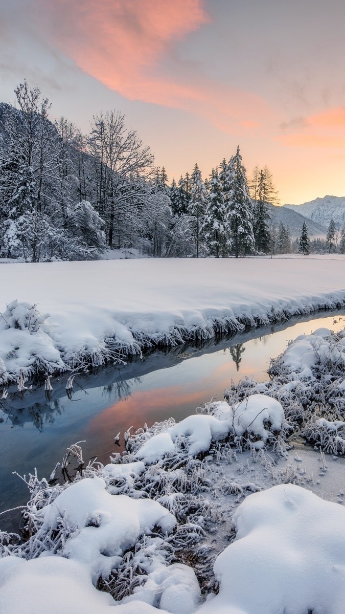 Edytor tapety: Potok w zimowej scenerii