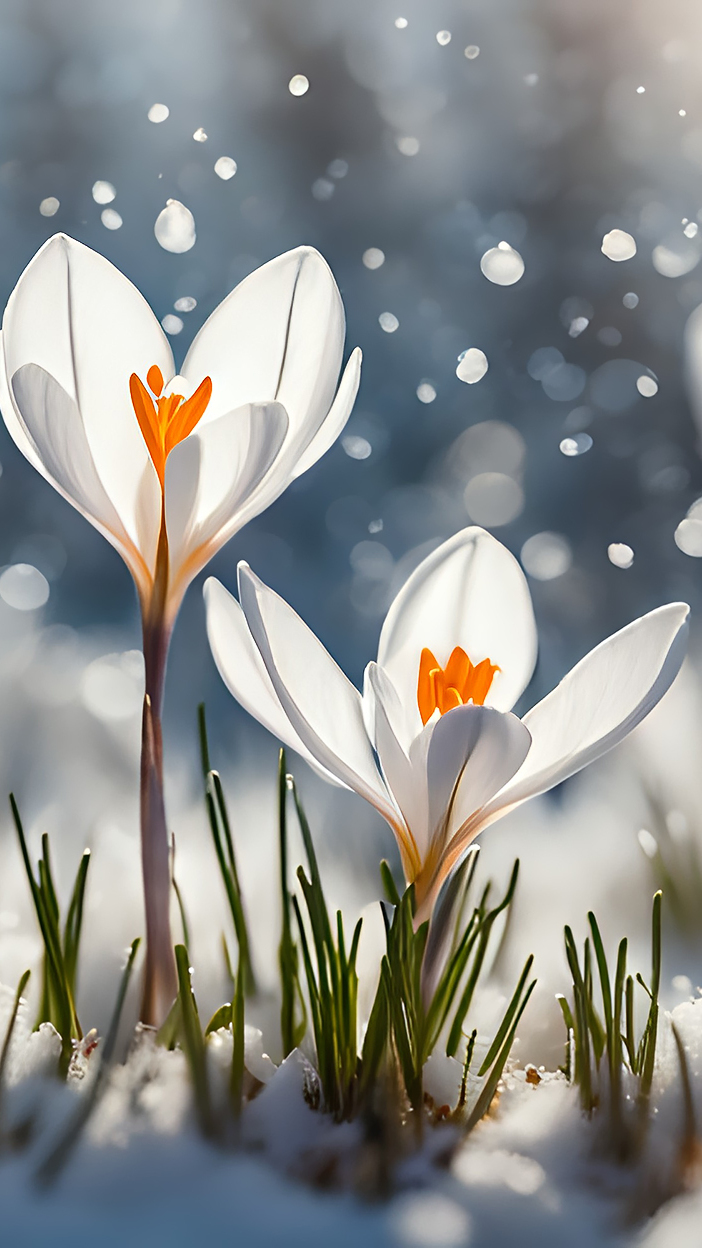 Edytor tapety: Rozświetlone krokusy w śniegu